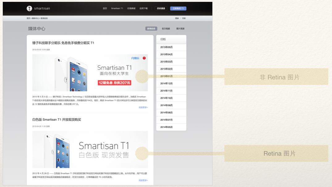 同一个页面中,同等类型的素材,有的就是 Retina素材,有的就不是,没有任何理由。缺乏规范的管理,必然流程混乱。