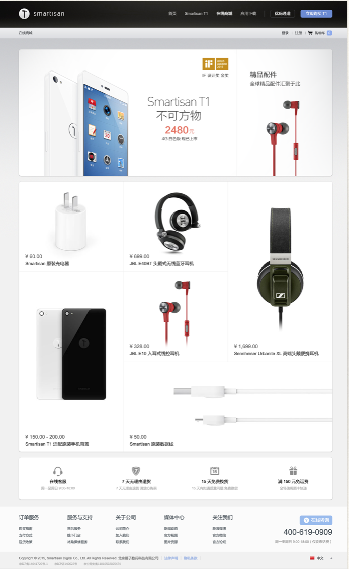 反观锤子官方网站,在线商城功能没有加分反而扣分。