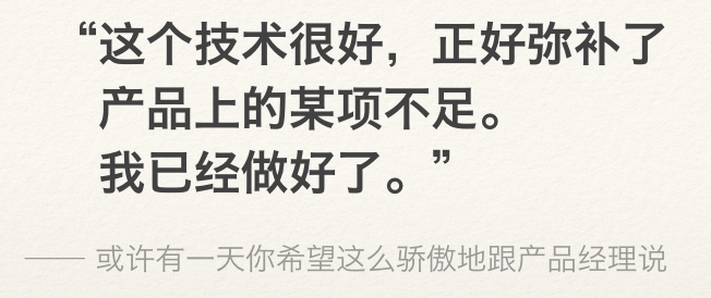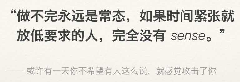 不会有时间充足的开发项目,「时间不够」不应成为任何事的借口。坚守自己:时间和 sense 就是你的阵地。