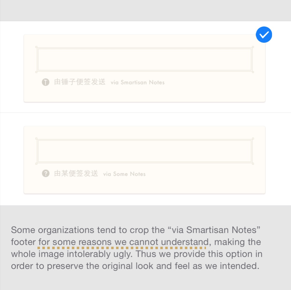 有时候为了免责或者说明,看起来锤子不得不说上好长一段介绍性的文字。这些文字保留了我们设计功能的初衷,它也切实对功能的使用提供了趣味和说明。